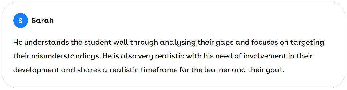 Parents and adult learners often waste hours on generic revision websites, unqualified tutors, or teaching that doesn’t work. My approach makes sure every session is targeted and efficient, so they can work smarter, not harder.